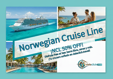 NCL 50% OFF, Free at sea: Open-Bar, Wi-Fi, Cenas y Propinas
