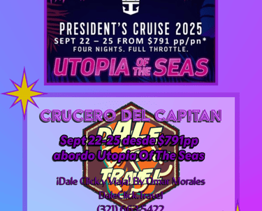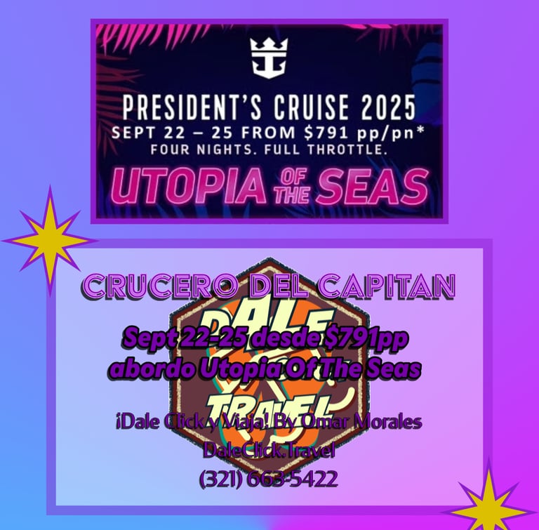 🚢✨ ¡Zarpa con estilo! Únete a la Presidents Cruise en Utopia of the Seas este 22 de septiembre. Una experiencia exclusiva que no querrás perder. 🌊⚓ #CruceroDeLujo #DaleClickYViaja